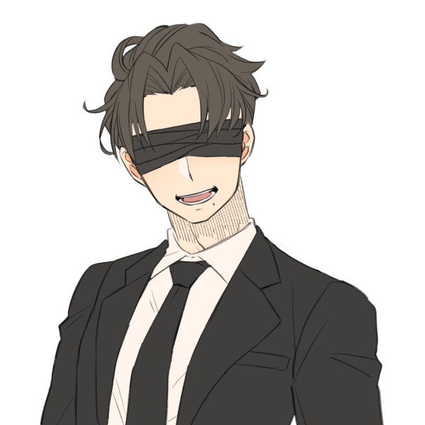 髪色は煤色。体格は中肉中背だが多少筋肉質。一般的な黒のスーツ。基本的には極々一般的な社会人男性のように見えるが、目元を黒い目隠しで覆っている。笑い方が胡散臭い。