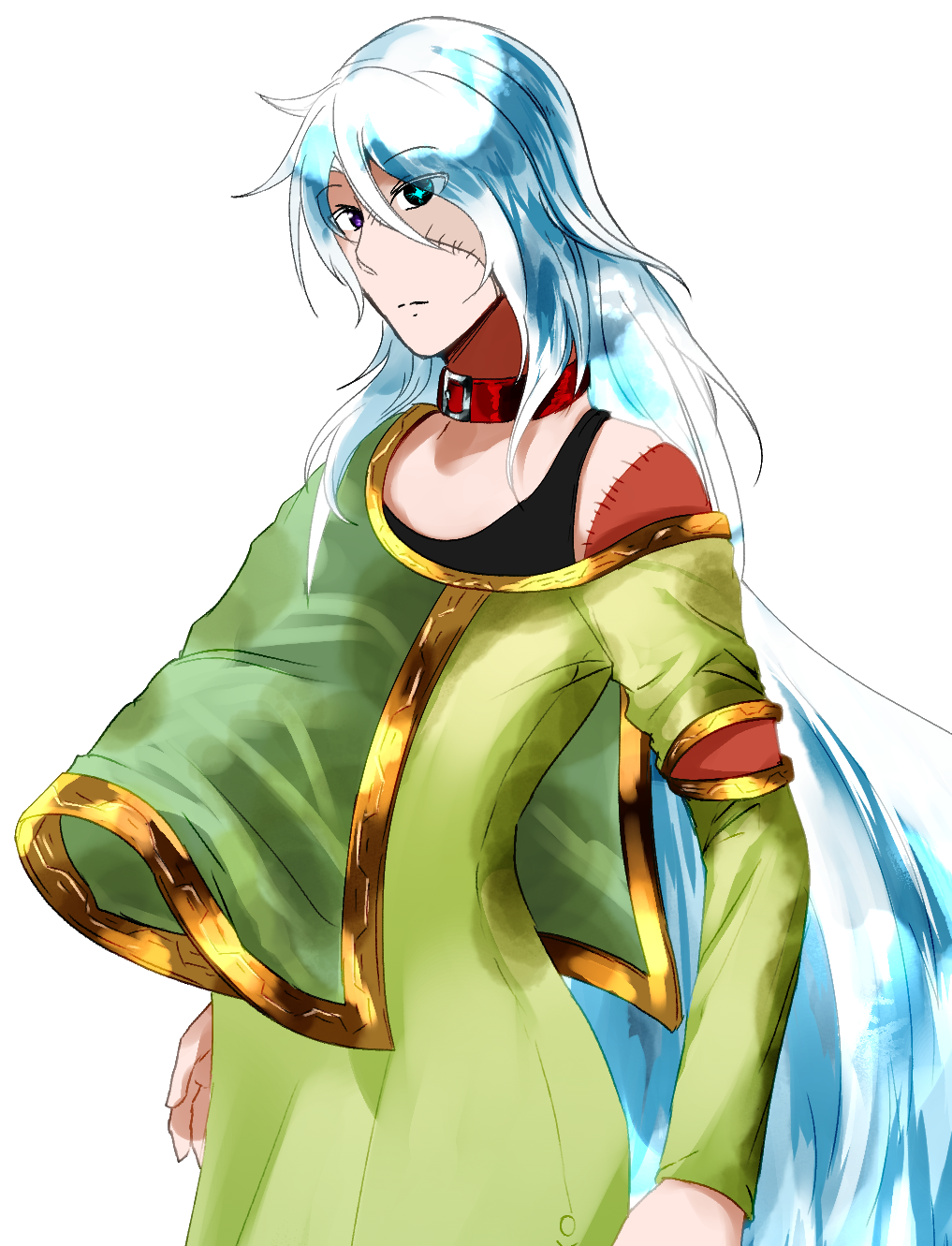 - 白髪。左目は隠している。