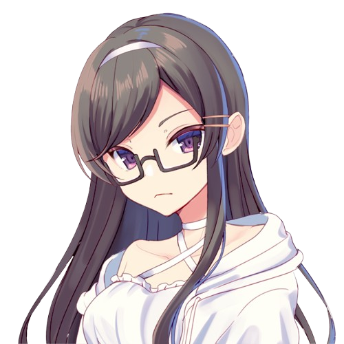 長い黒髪に黒目で、フレームの太い眼鏡をかけている。(サーチレーダーとなっている)