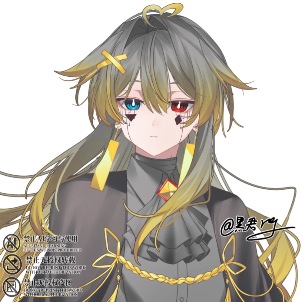 瞳はオッドアイで向かって右側が青系、左側が赤系の瞳をしている。