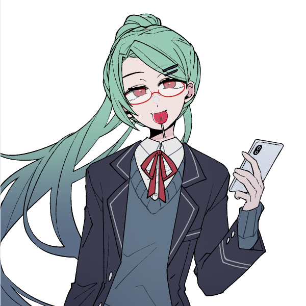 - 朱色の瞳、ポニーテール、メガネ(伊達)