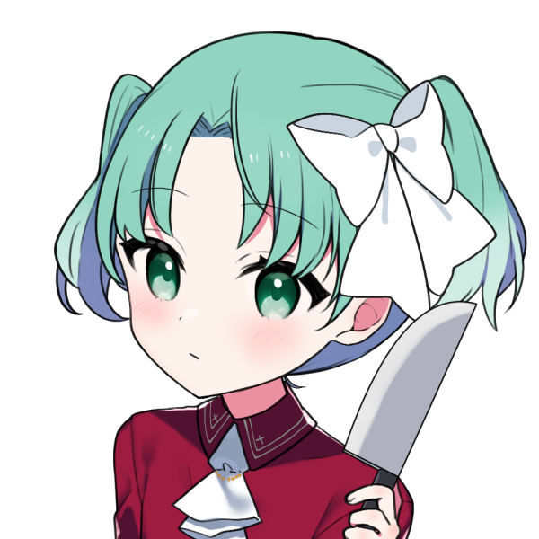 緑色のツインテール、緑色の瞳に赤い服