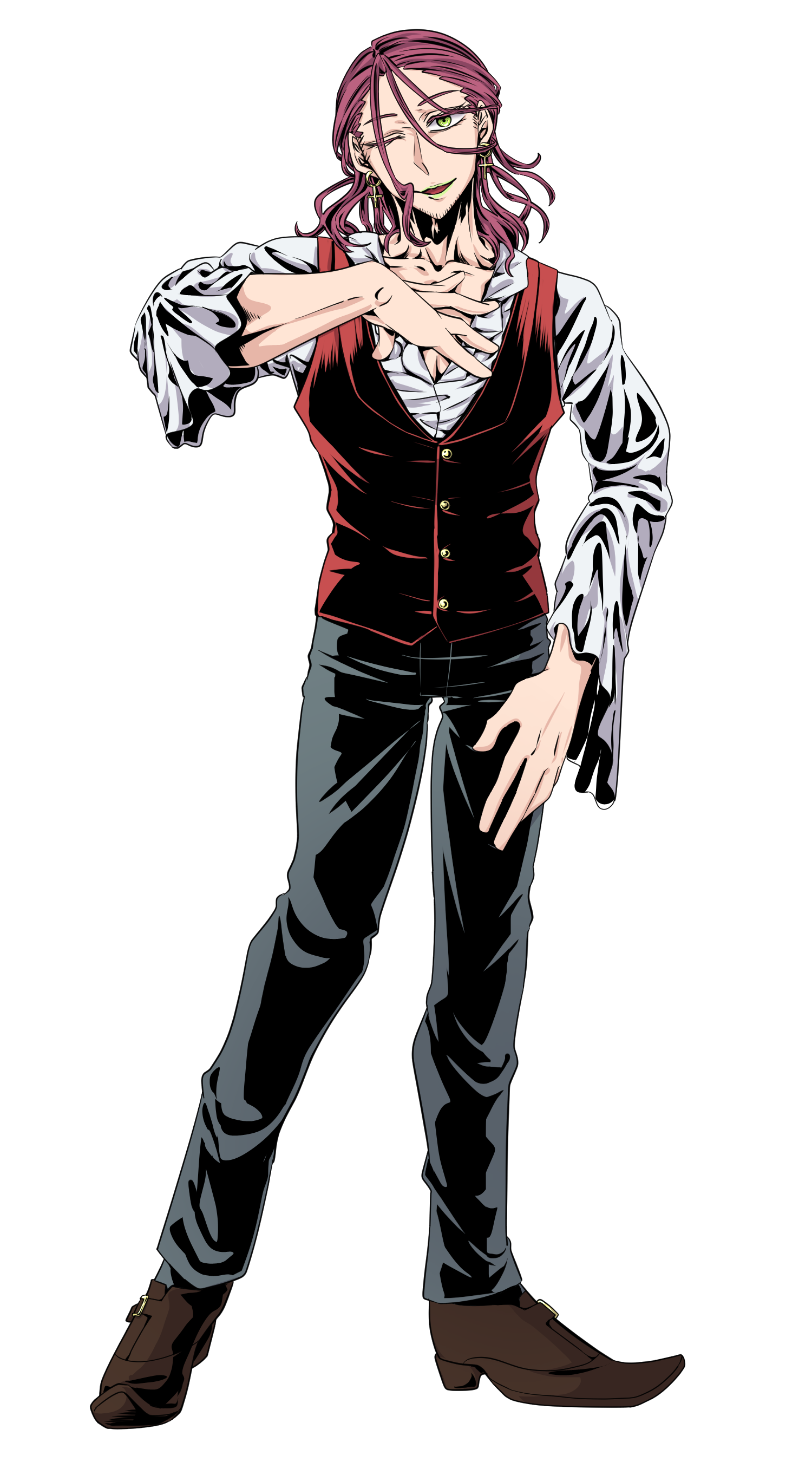 ティンダロス逆絵市自警団のリーダーを務める男。オネエ。面倒ごとは御免だと口で言いながらも結局困っている人を助けずにはいられない、リアクションの激しい苦労人。懐に入れた相手にはなんだかんだ甘い一方、嫌いな相手には結構冷たい。