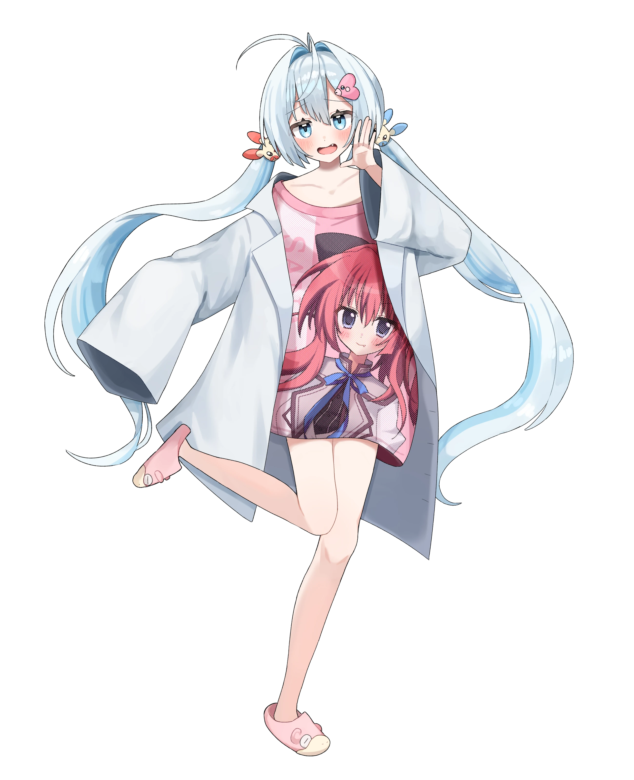 白衣を常に着用していて、その下のTシャツには好きなアニメのキャラクターが描かれている。