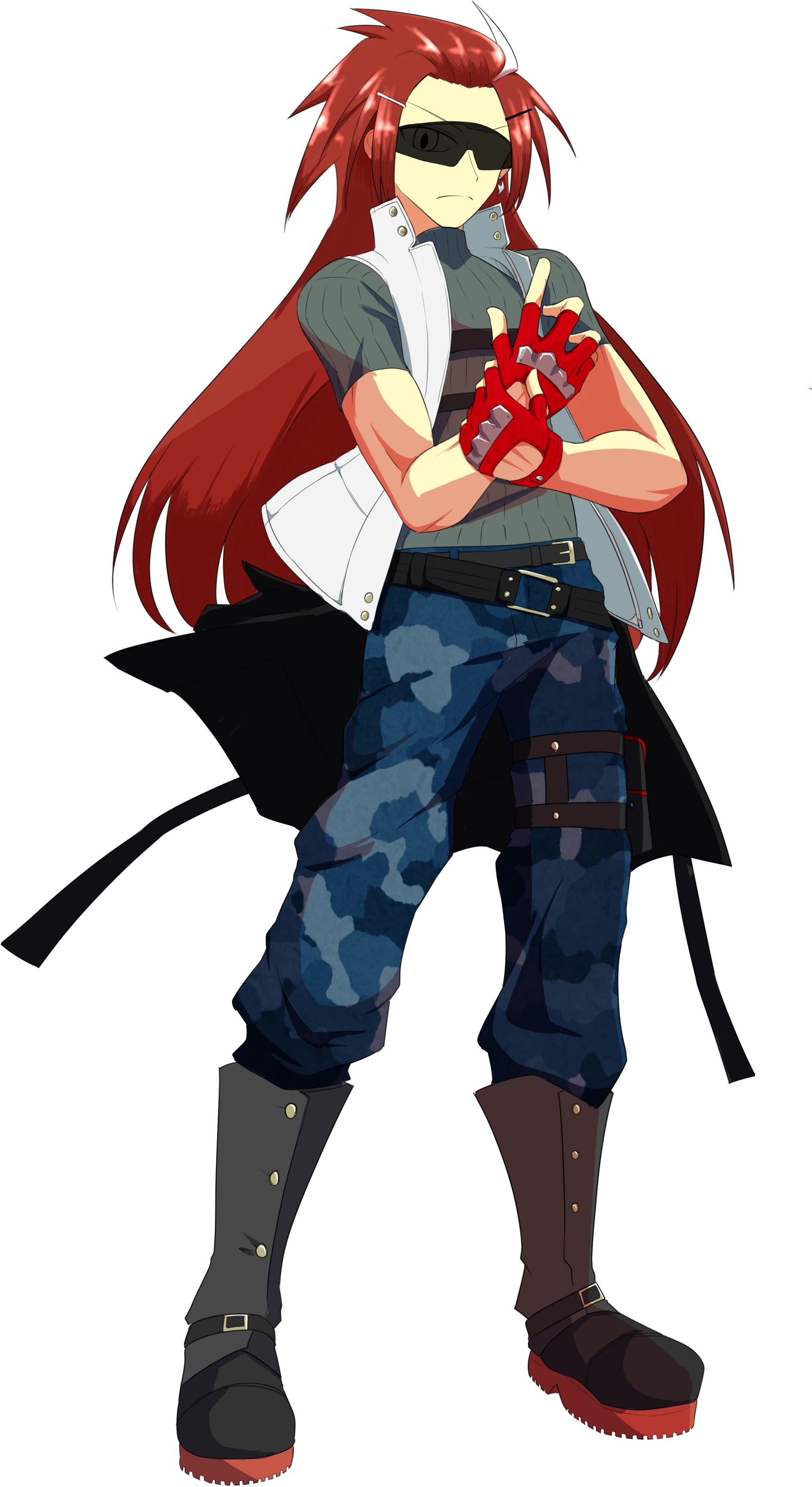 サングラスの下は緑色と茜色のオッドアイになっている。