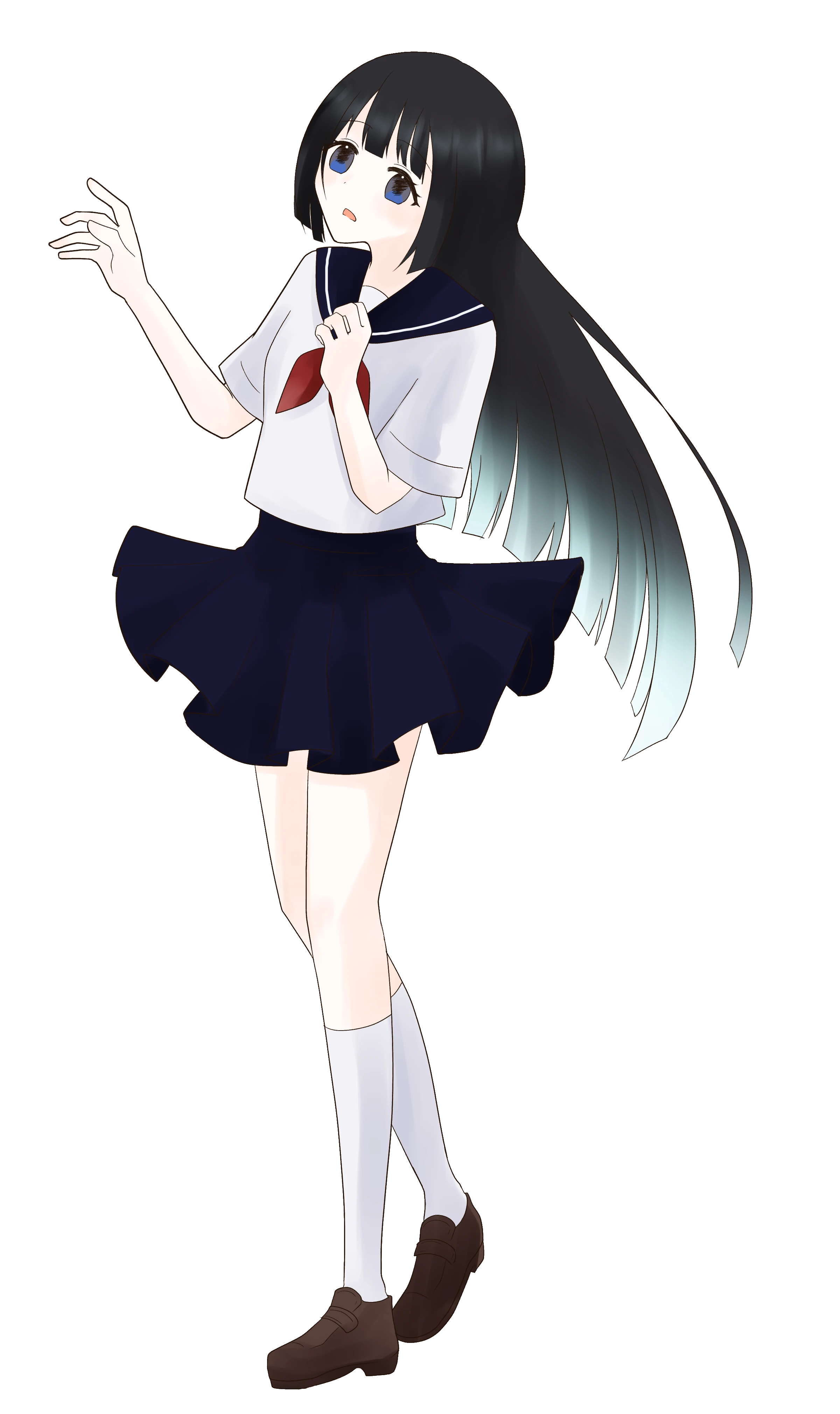黒の姫カットロングヘアに黒の瞳。