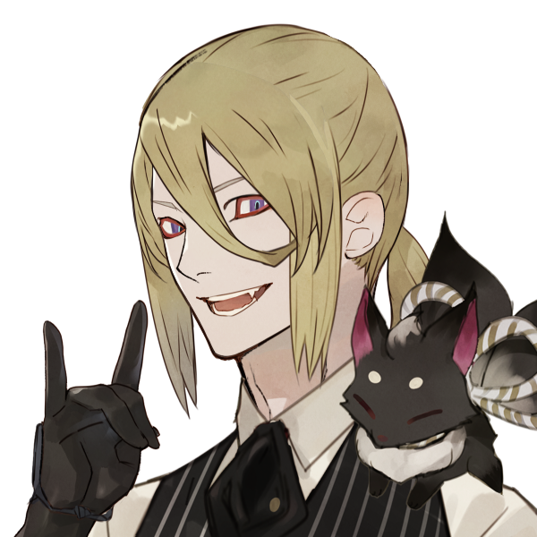 外国人の親の遺伝による金髪とレネゲイトウィルスによって変容した3種の色が入った眼球を有するため、一般を逸脱した容姿であり、飄々と遜った姿勢と振る舞い、使用人風の風貌をしていることもあって、怪しさを醸し出し、いまいち信用されにくい。