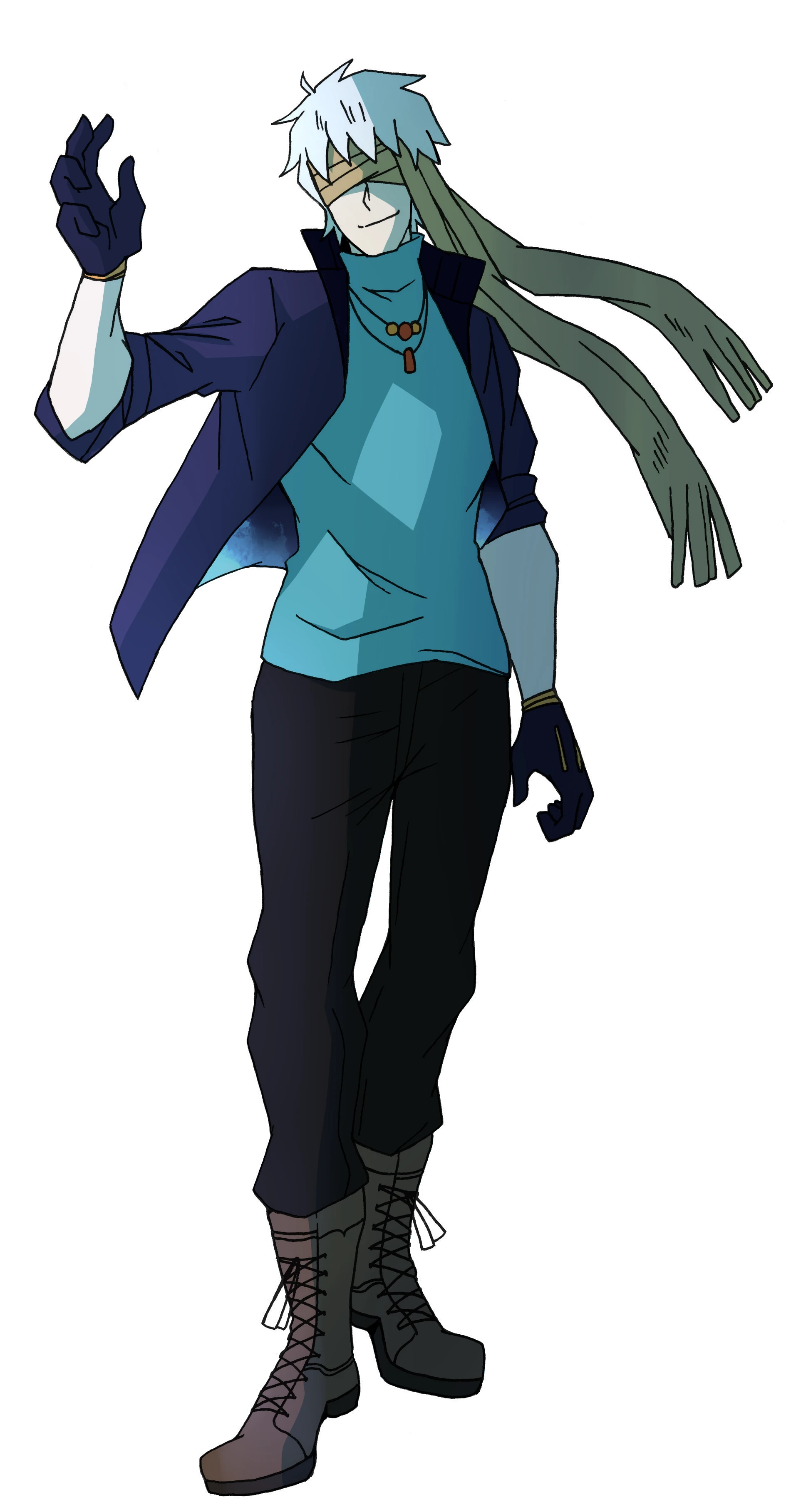 白い髪、目を布で覆ってある不思議な風貌の男性