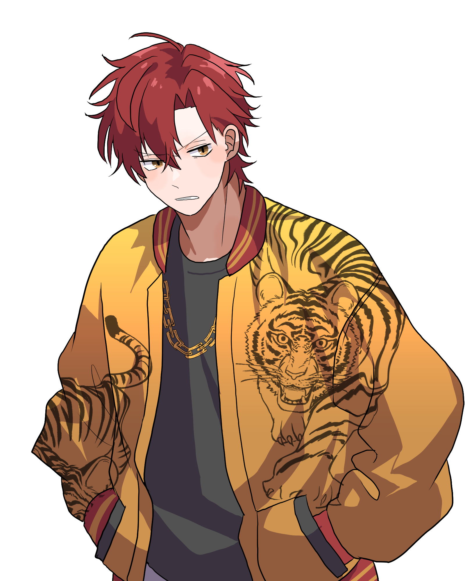 目立つ髪色にスカジャン