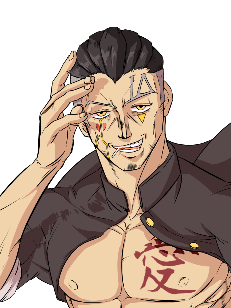 「おぅ、神羅。んんんん??どうしたぁ~~~?そんなに不思議そうな目ぇしてよぉ~~~、あぁ、これかぁ?いいか~~~神羅ぁ、この傷はなぁ、俺とお前にできた初めての繋がりだ。それから目を背けるなんてよぉ~~~、そりゃぁお前悲しいことだぜ?これは俺とお前の思い出だろぉ??ふれてみな~~?……ほら、あったけぇだろ?これが『愛』だ」