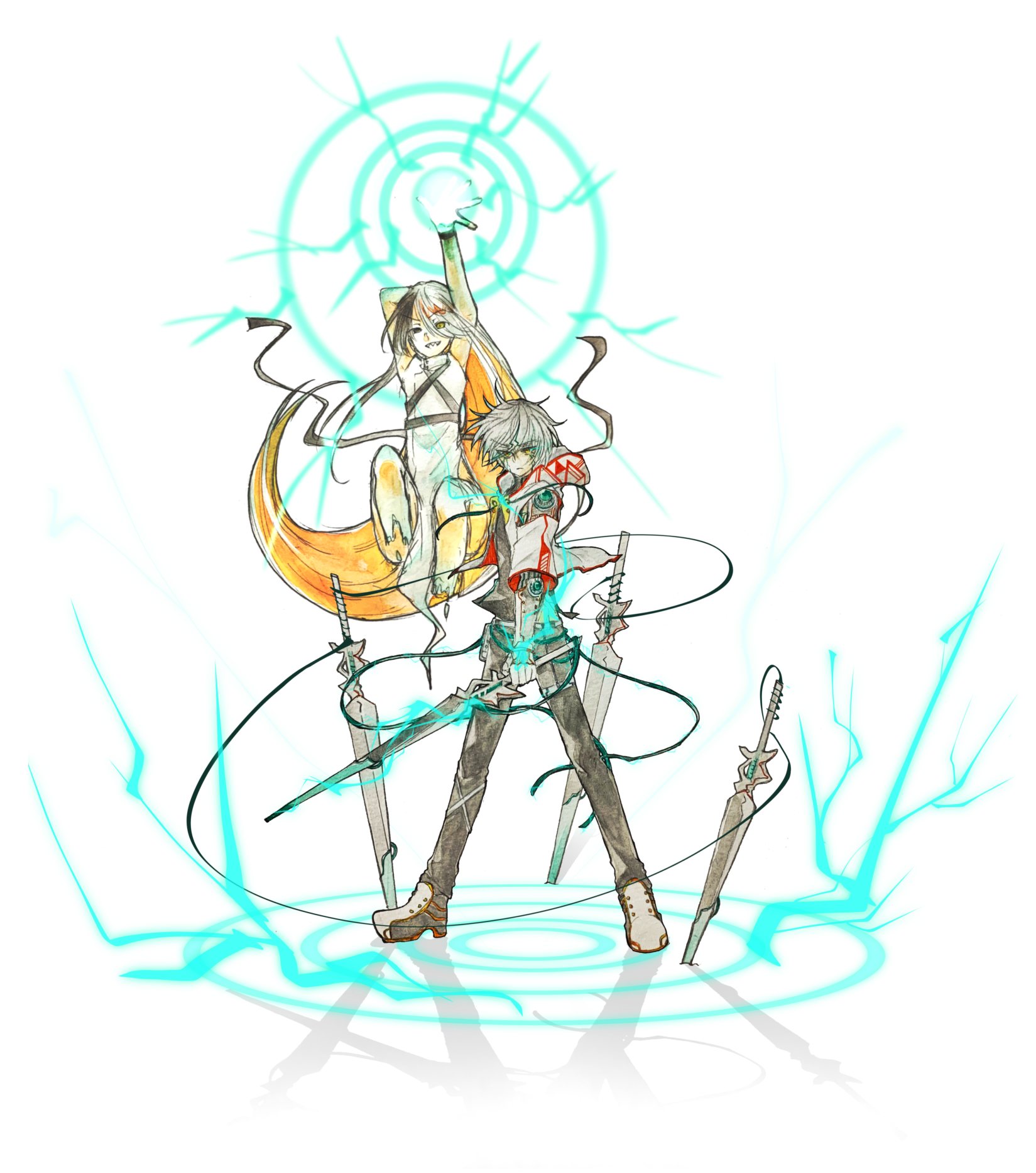 肌 白。両腕が帯電し発光している。