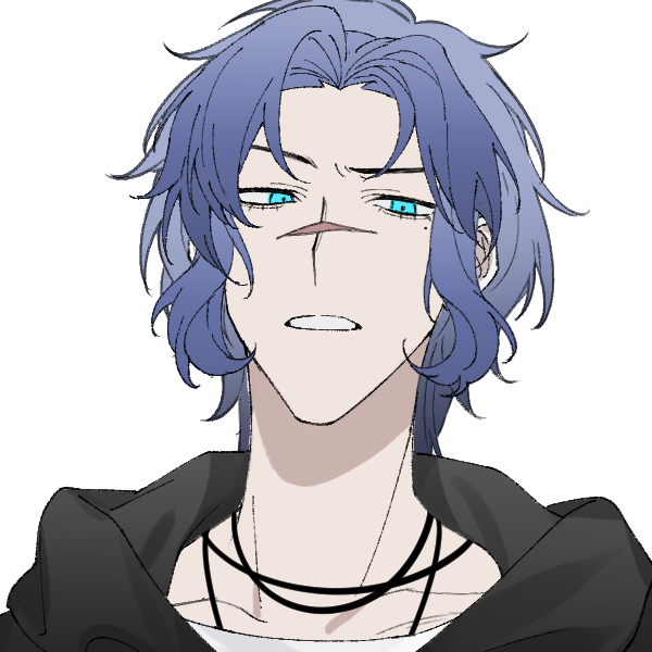 青い髪が特徴的な長身の青年。