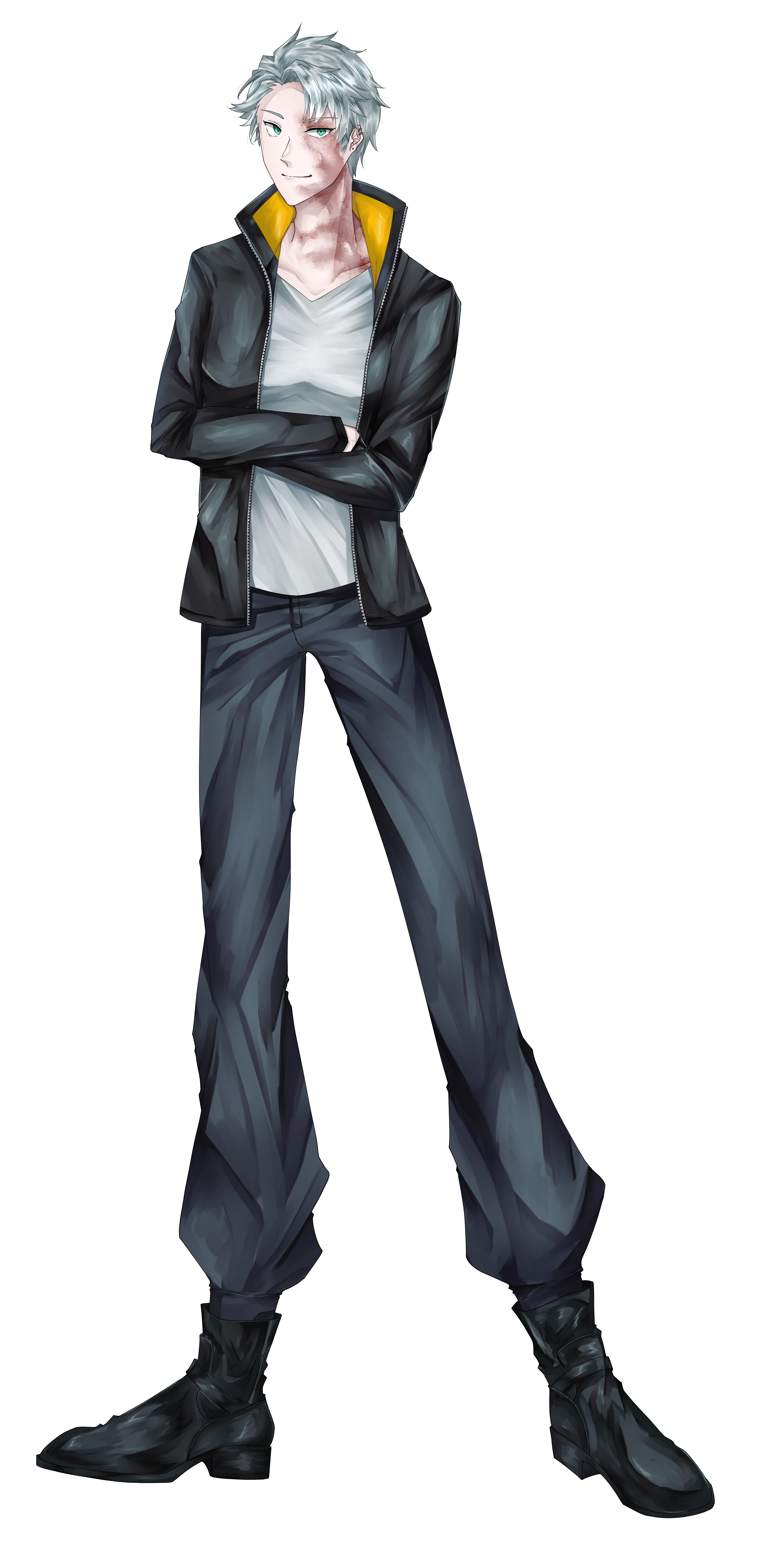 服装こそ他に埋もれるようなものだが、目を引くのは顔面に広がる大きな傷。少しばかり引き攣るようで表情作りはぎこちない。しかし本人はさほど気にしていないような素振りを見せる。