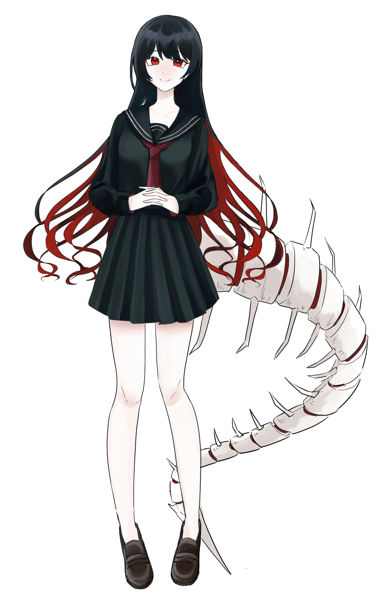 背から発達した骨が尻尾のように生えていて、普段は体に巻いて隠している。