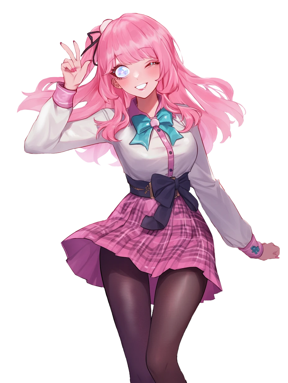 桃色の髪に青い瞳