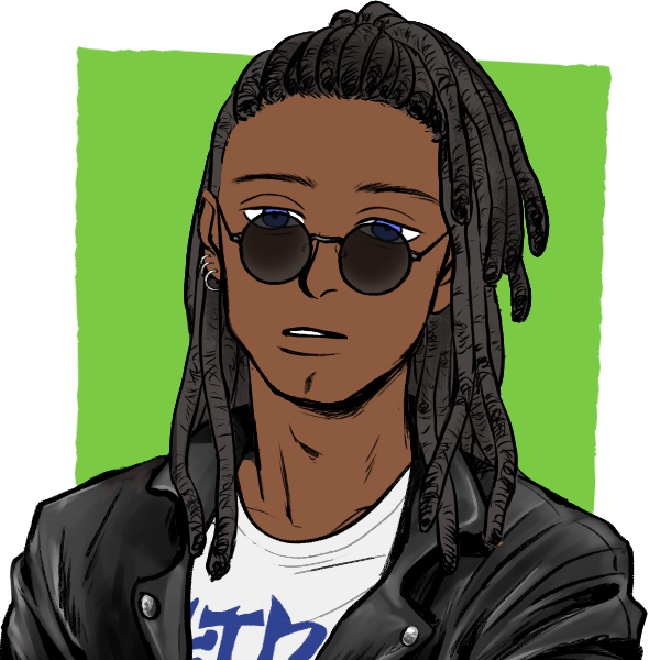 ドレッドヘアーにミラーグラスの浅黒い肌の大男。