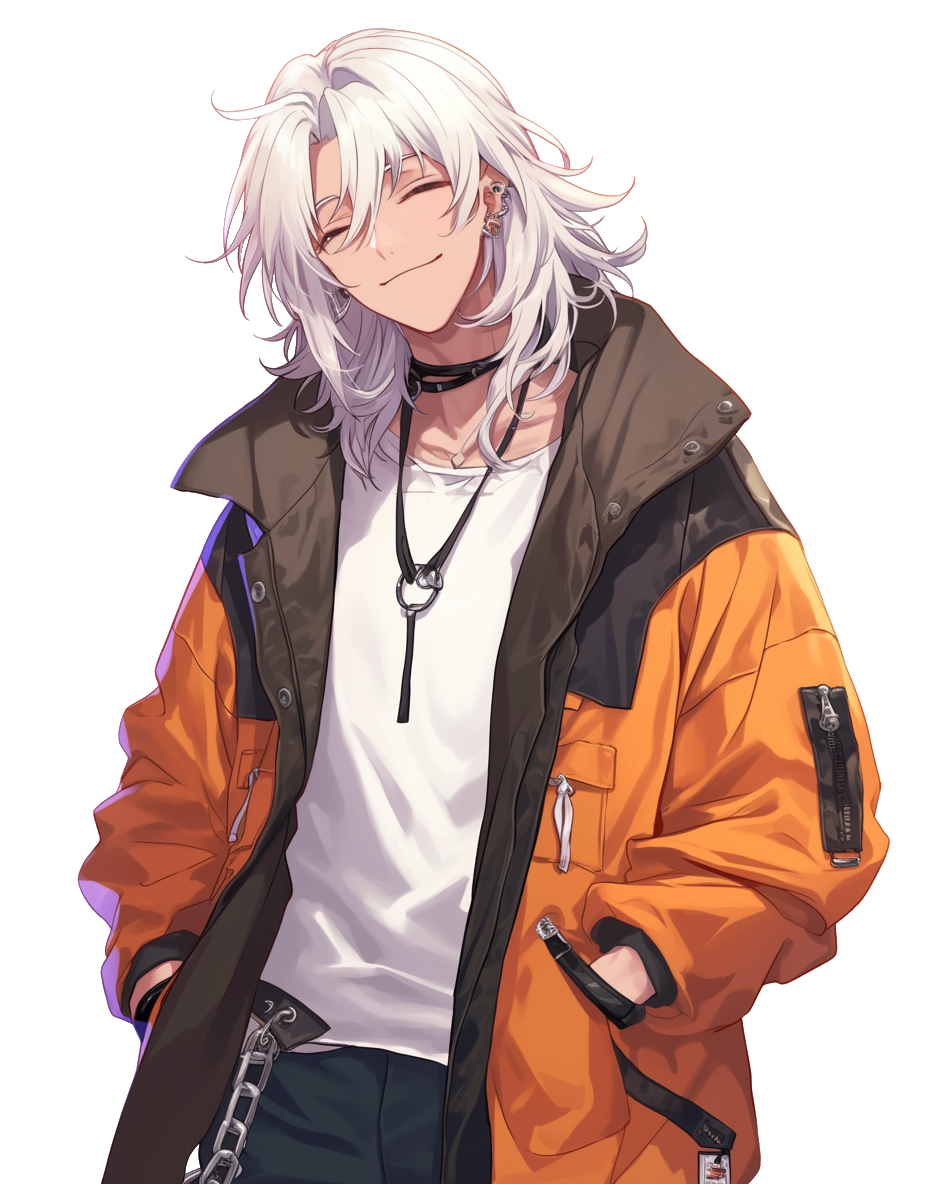 脱色した髪に細い目が特徴的な青年。