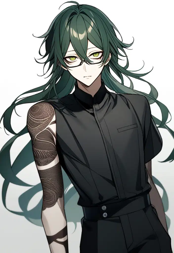 - 暗い緑色。長いボサボサの髪をしている。