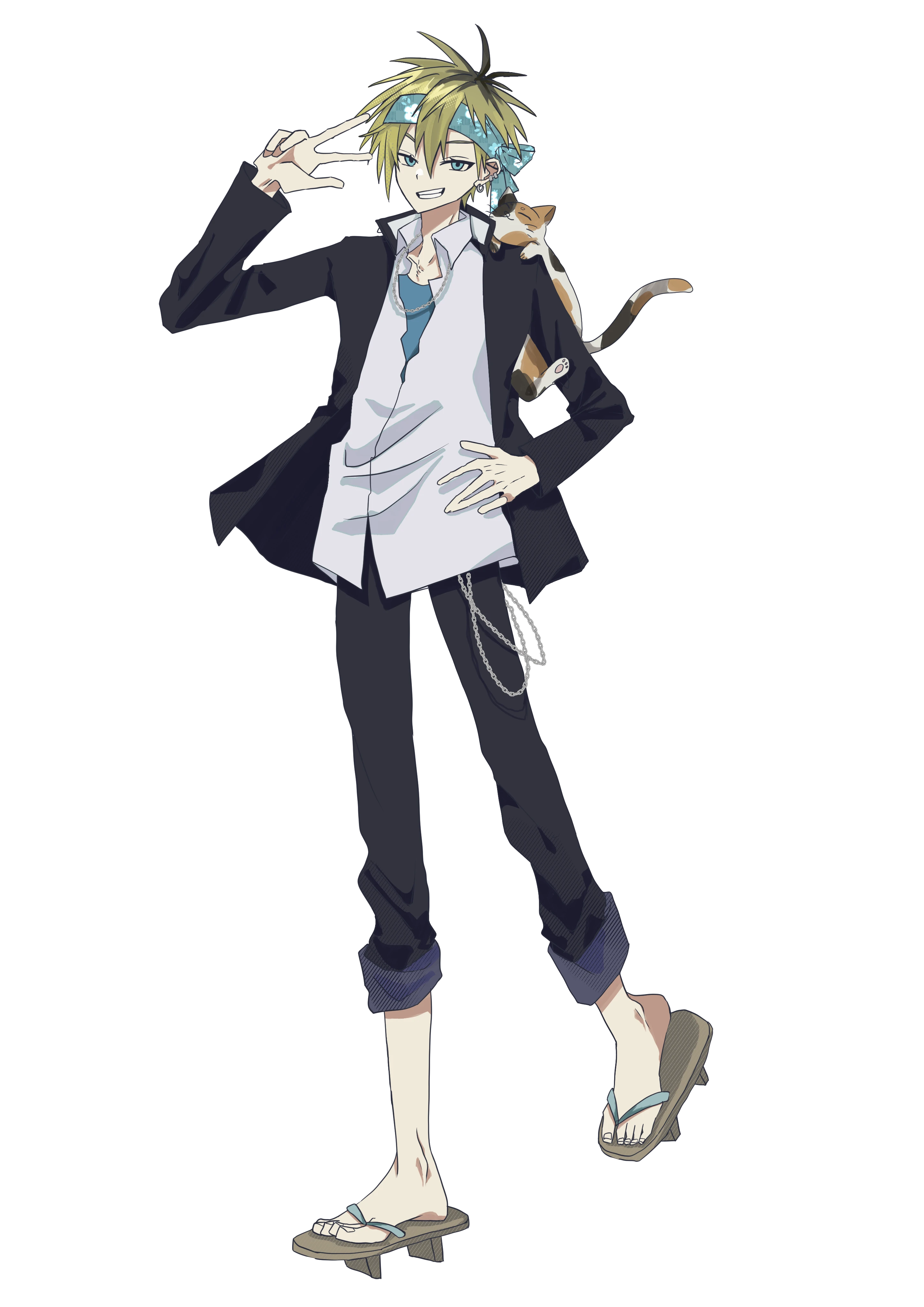 金髪に水色の鉢巻きを巻いた男