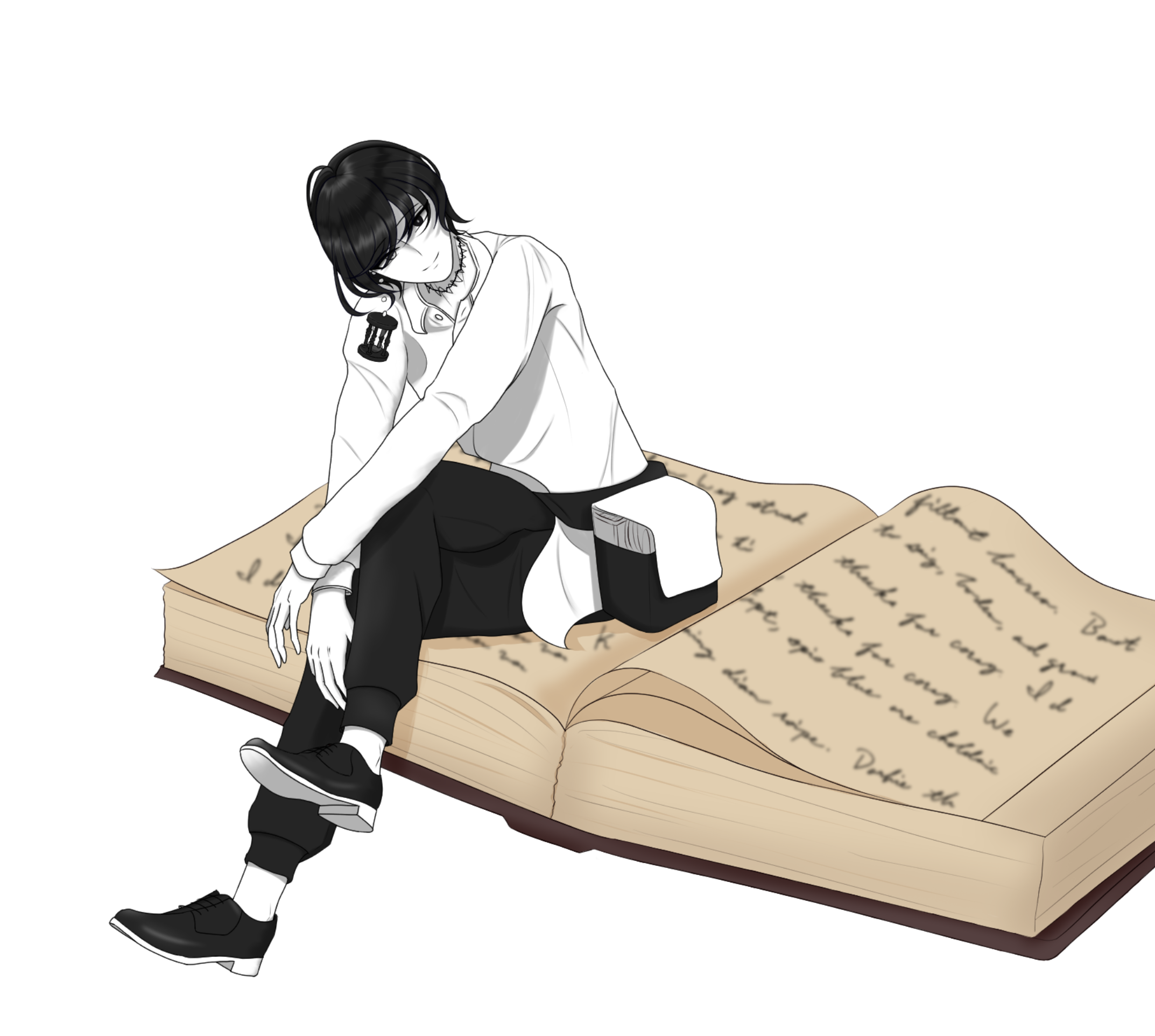 その姿の周辺には本から零れ落ちたであろう文字や黒いインクが漂っている。