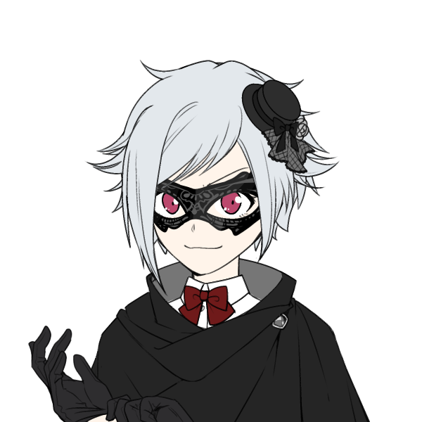 - 銀色の髪に紅い瞳、黒いコートに目元を隠す仮面