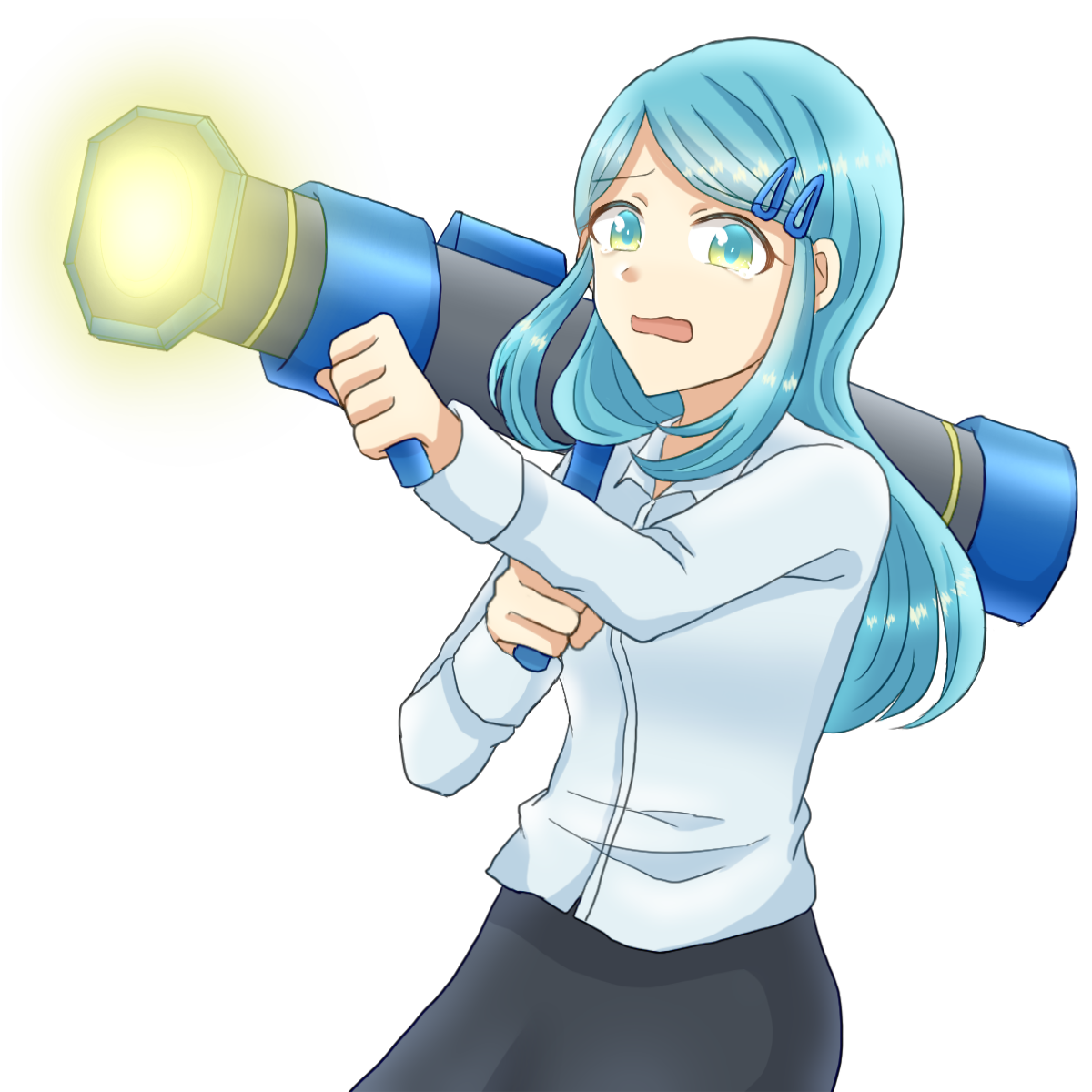 光を集めて巨大なバズーカを生成する。(100未満)攻撃力+3。(100以上)攻撃力+4。
