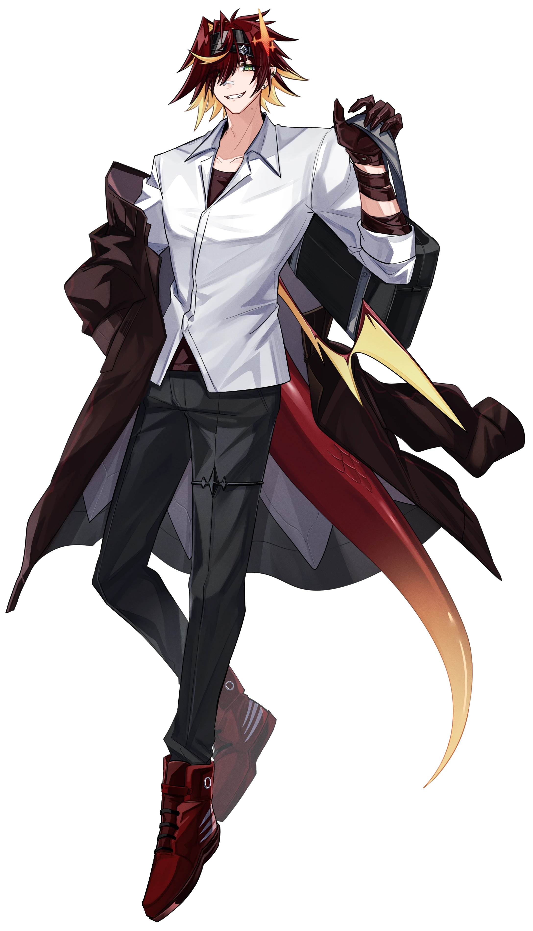 赤い髪に黄色いインナーカラーのはいった高身長の青年。