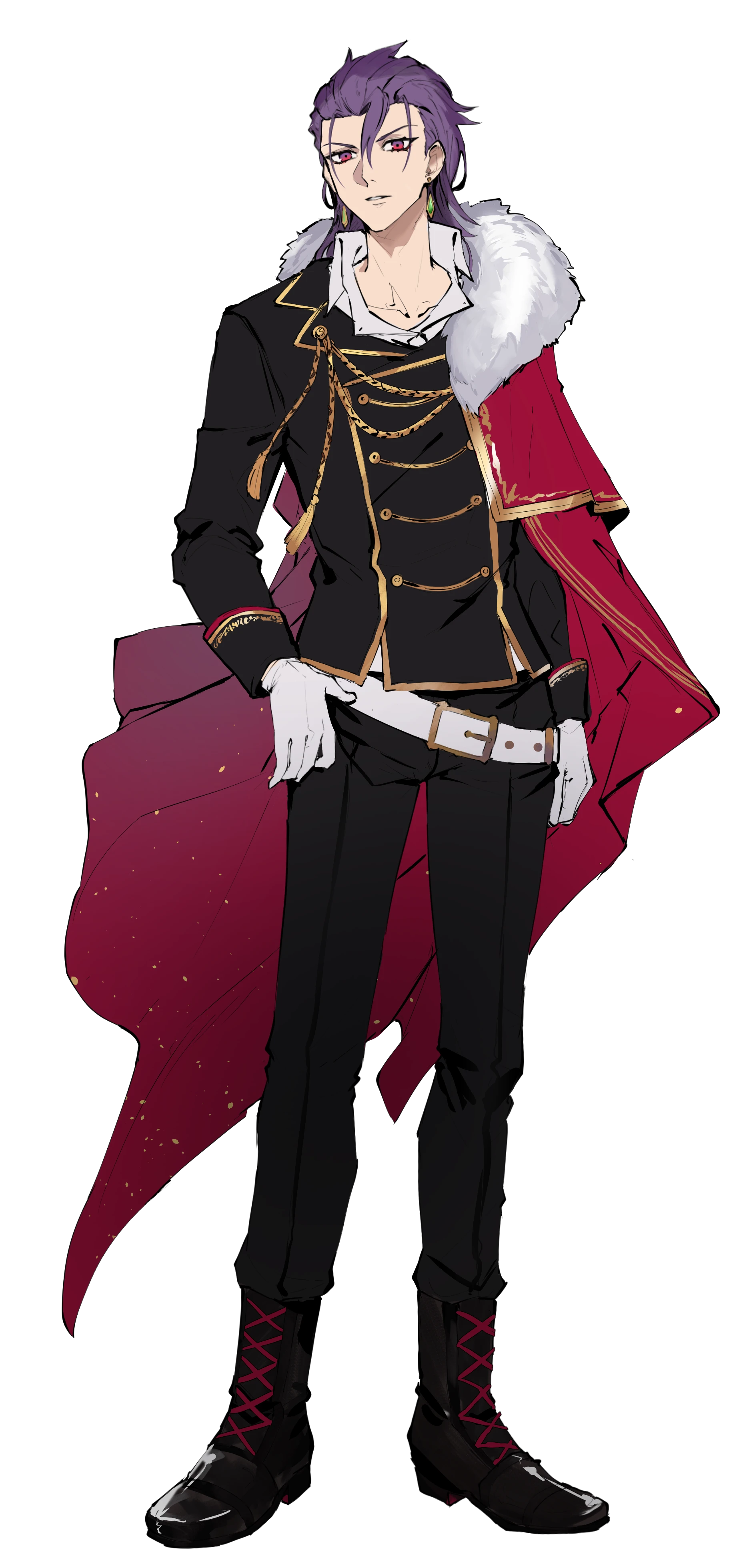 紫の髪に赤の瞳を持った、傲岸不遜にして唯我独尊の男。基本的に上から目線であり、加えてさしたる情も無いため他者へ与える印象としては暴君のソレである。