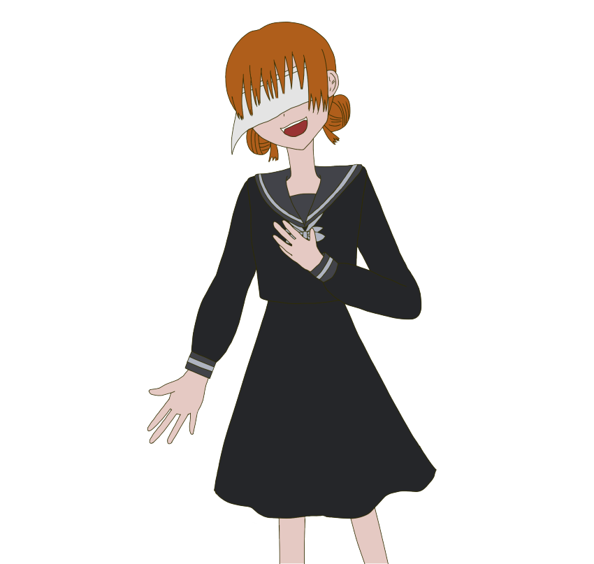 目つきが悪いため、目元を隠している。