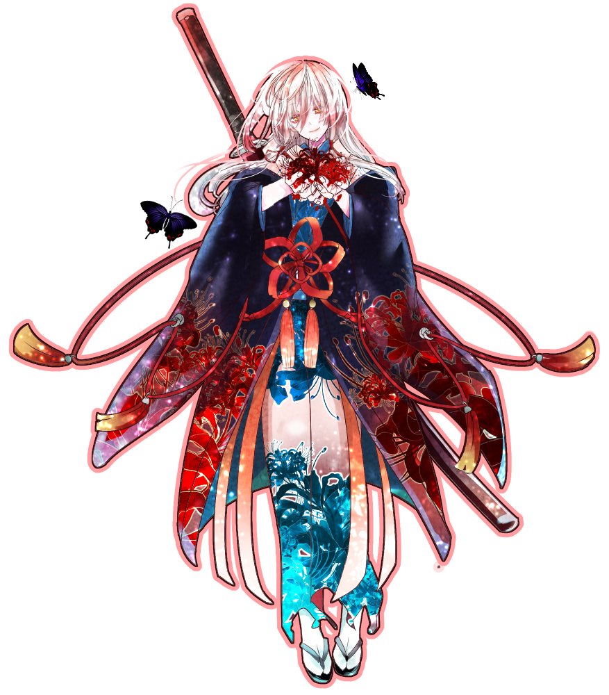 懐に忍ばせた小刀で、躊躇いなく自分の手首を動脈ごとばっさり斬り裂く。流れ出る血液を自身の身の丈程ある大振りの太刀に纏わせ強化。その後、鞘がついたままの太刀を片手に、1歩、踏み出し敵に接敵。踏み出した勢いで振り落とすように、投げ出すように鞘から刃を抜き出すと、相手の首を狙い、斬り落とす。