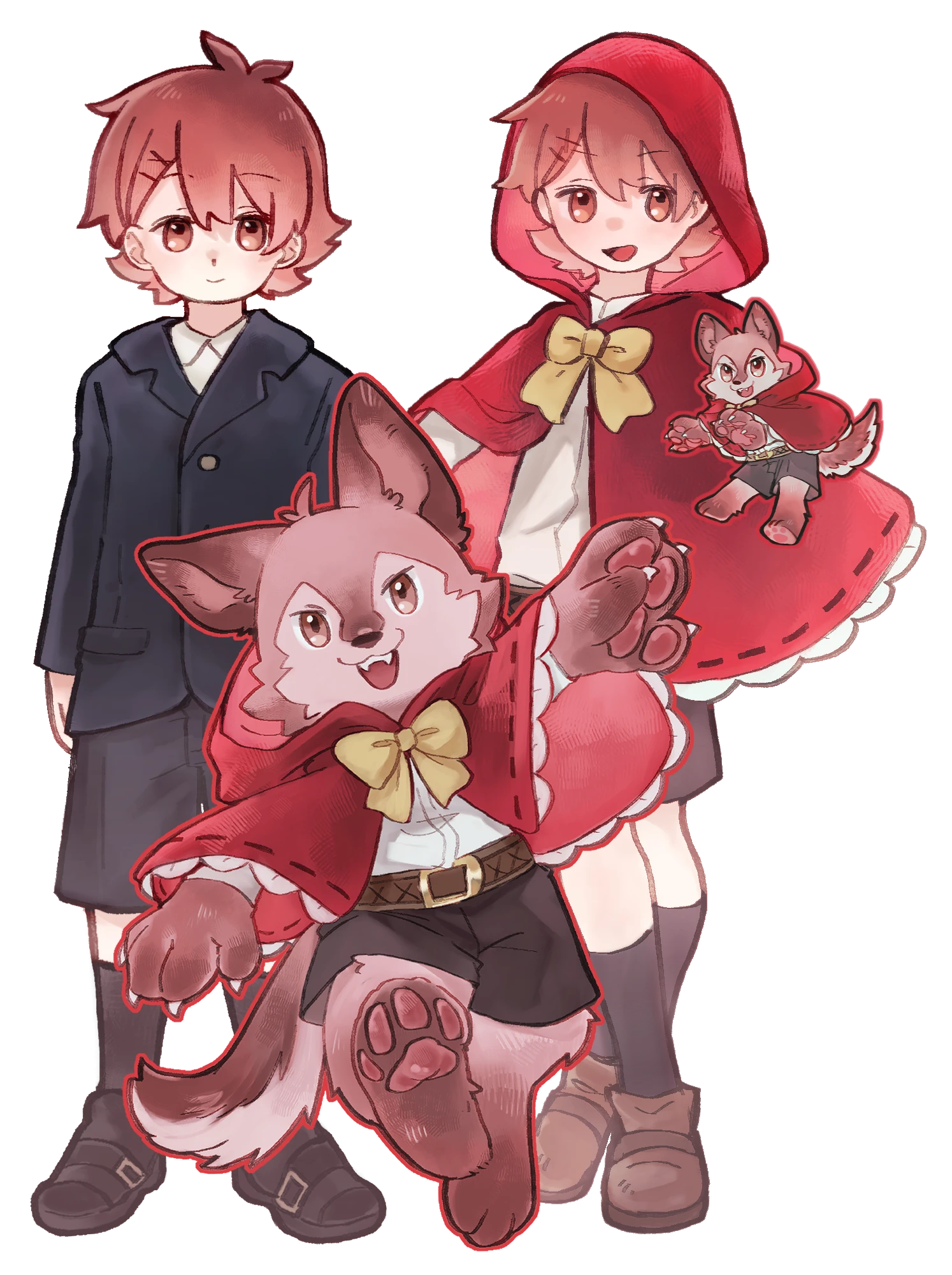 | 邂逅 | 基本的には赤ずきんモチーフの予定 完全獣化でぬいぐるみチックな赤ずきん狼になる! | |