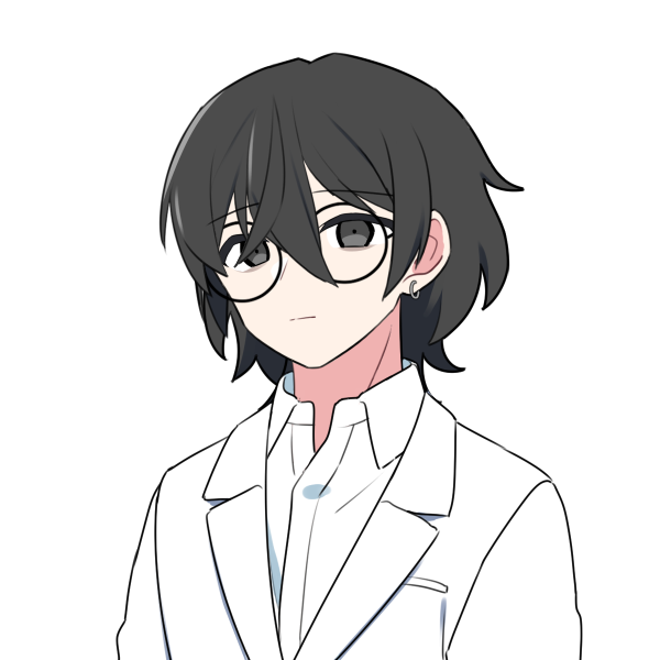 長い前髪にメガネをかけている。