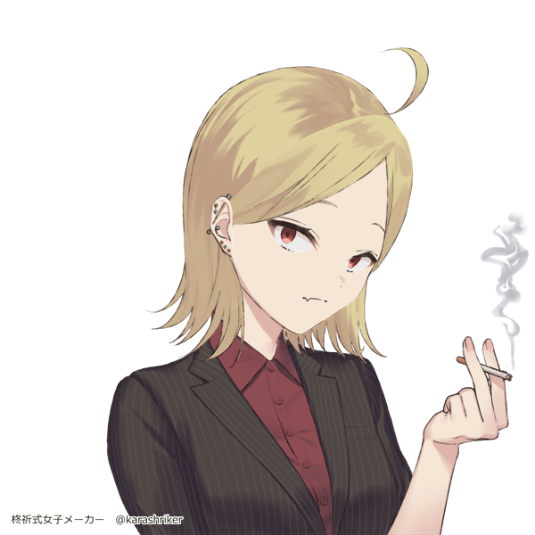 金髪、八重歯、吊り目、ピアスに三白眼で小柄ながらやや威圧的な印象を受ける見た目。実際口も悪い。