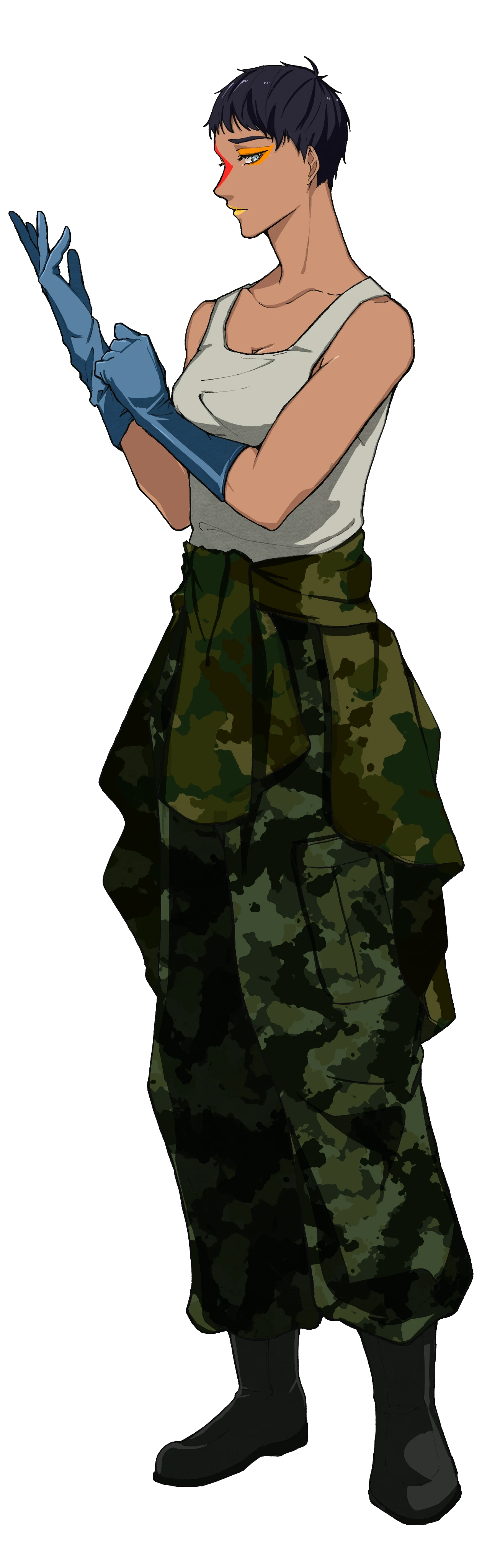 ミリタリー風な容貌は、金氏が威圧を含めてコーディネートをした。