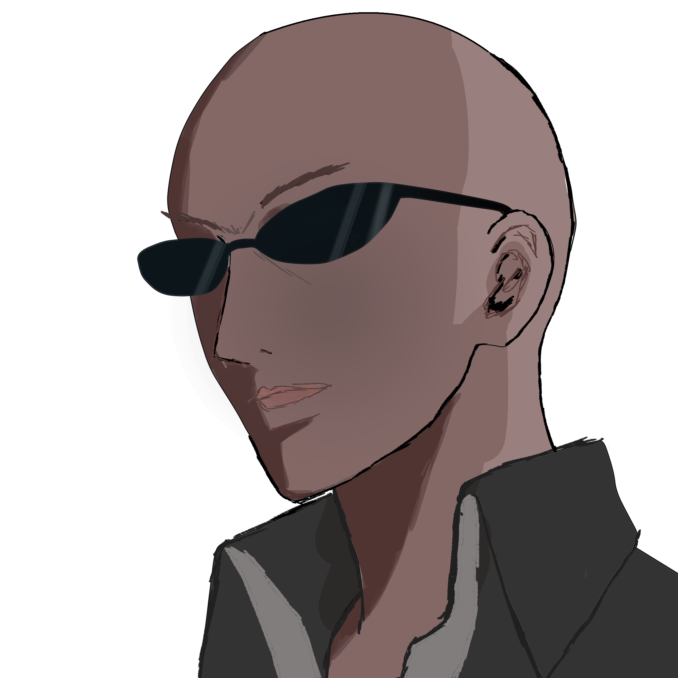 190㎝の細身の長身。スキンヘッドサングラスのエチオピア人。