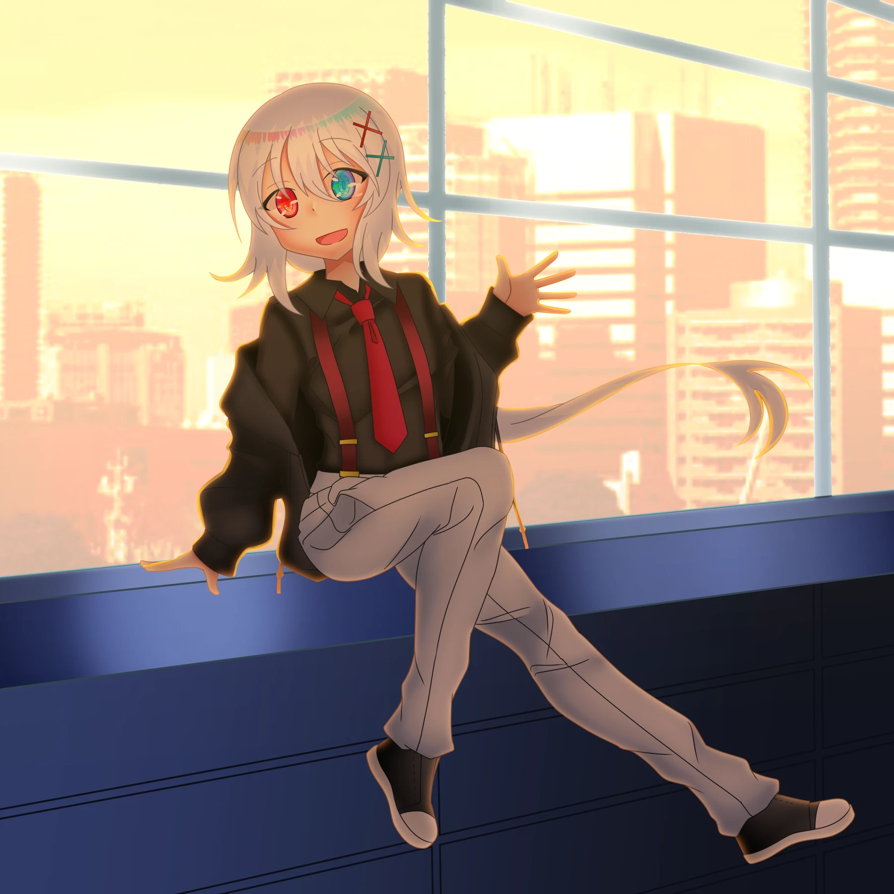 紅と蒼のオッドアイと灰色がかった長髪、あとは女性としか見えない身体の丸みが特徴。
