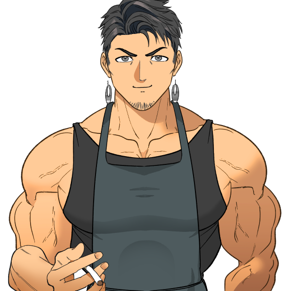 普通のバーの店主、と自称するがめちゃくちゃホモっぽい恰好してるお兄さん。ガチでムチなのでそういう方向性のお兄様方からのウケがやたらといい。冬でも立ち絵通りの恰好してる猛者。