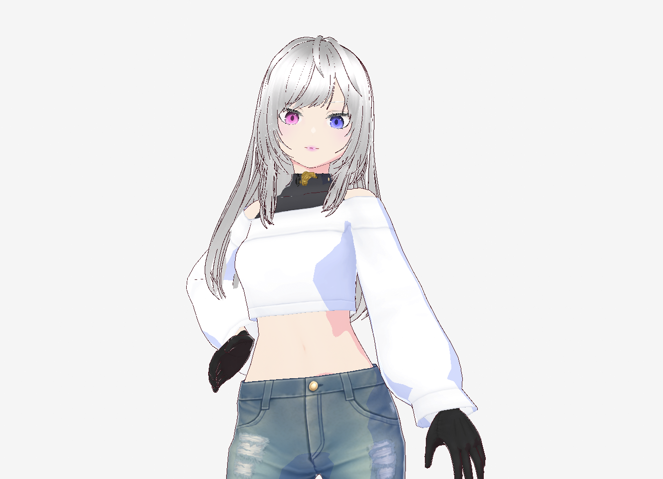 白髪かつフ―シャピンクとミッドナイトブルーのオッドアイ。