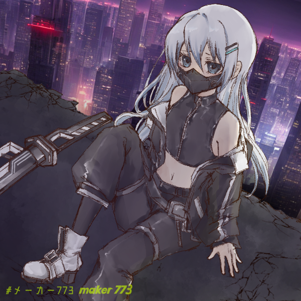 戦闘時は身軽さと『夜に紛れる』ことを意識した服装になっており、全身黒コーデの服装と口での表情の見分け方を妨害したマスクを付けている。