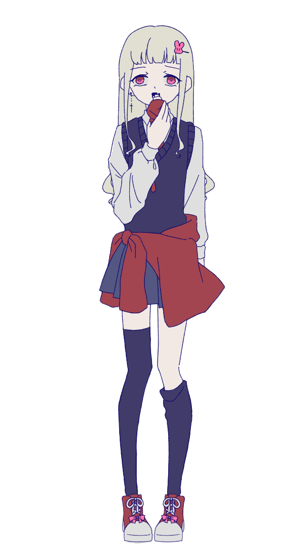 容姿としては、明るい髪の毛(地毛)に血色の悪い肌。身につけているペンダントは亡くなった母親の形見であり、うさぎの髪留めも最後に母からもらったものであるためずっと大切にしている。
