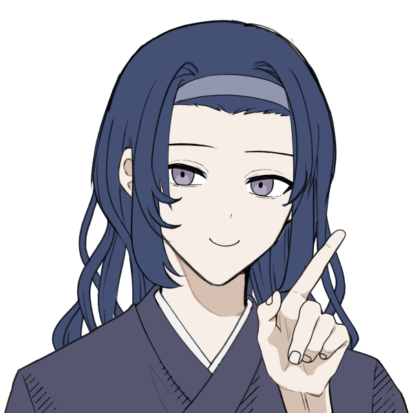 藍色の髪で前髪を左右に分け、あとはそのままおろしている
