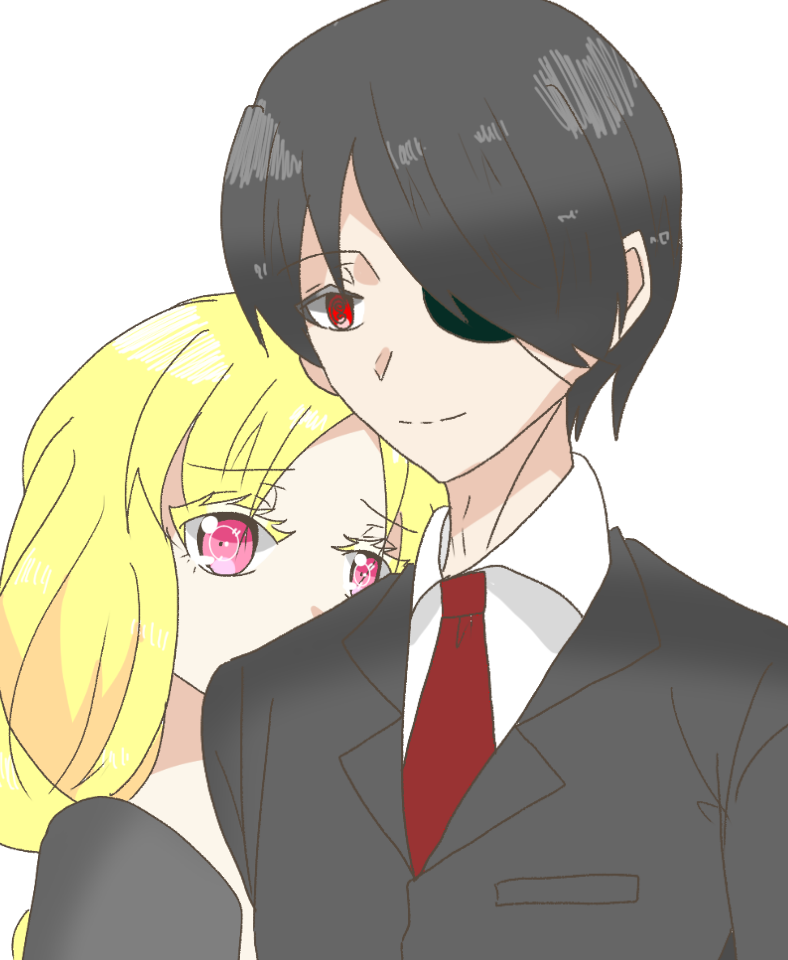男性の姿で左目には眼帯を付けている。