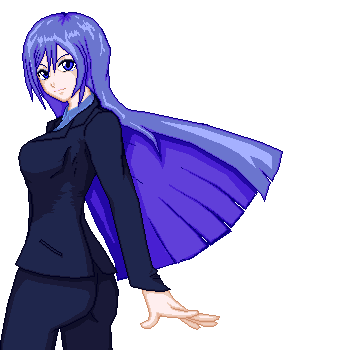 青のような藤色のような長い髪。日常を過ごす時はエンジェルハイロゥの力で光の反射により、髪は黒く見えるようにしている。
