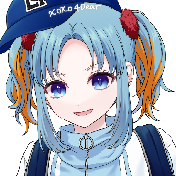 ツインテールに帽子青いジャージにリュック