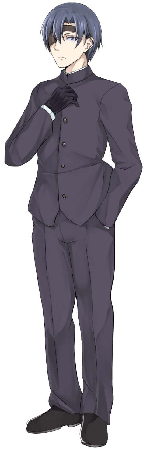 生真面目な性格をした眼帯を付けた痩せぎすな男子。