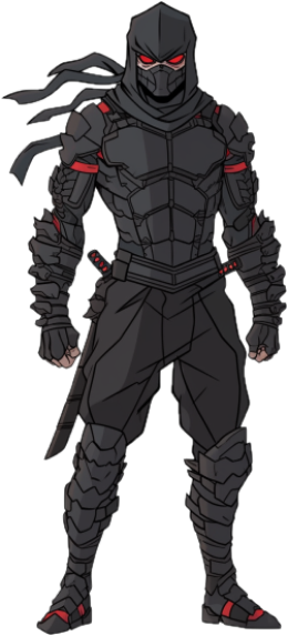 黒衣のあちこちに鈍い銀の機械がつけられたサイボーグ・レネゲイド・ニンジャ。