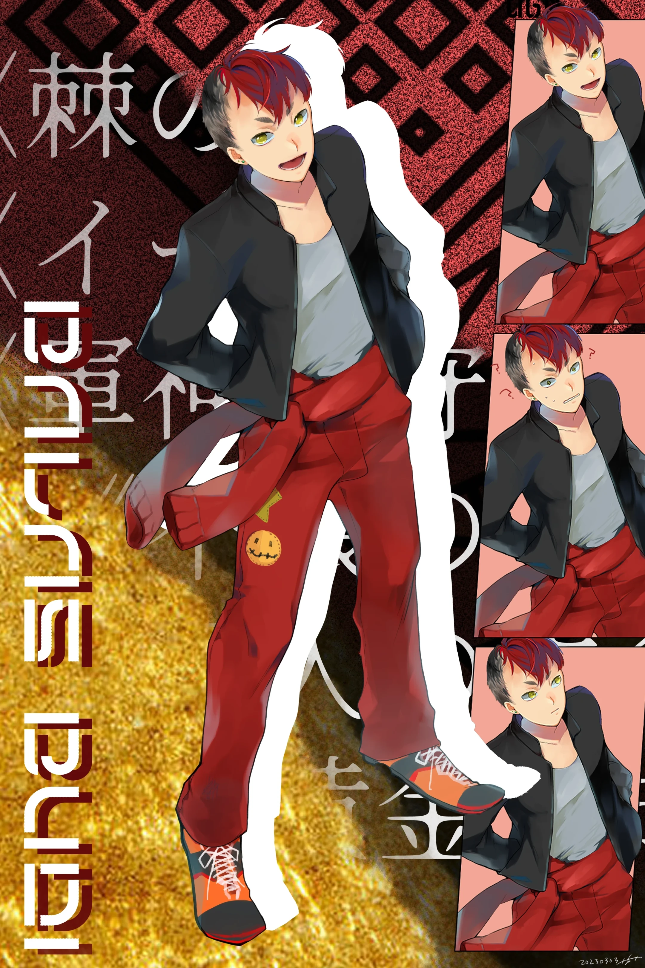 - 黒髪赤メッシュ。 ※予定