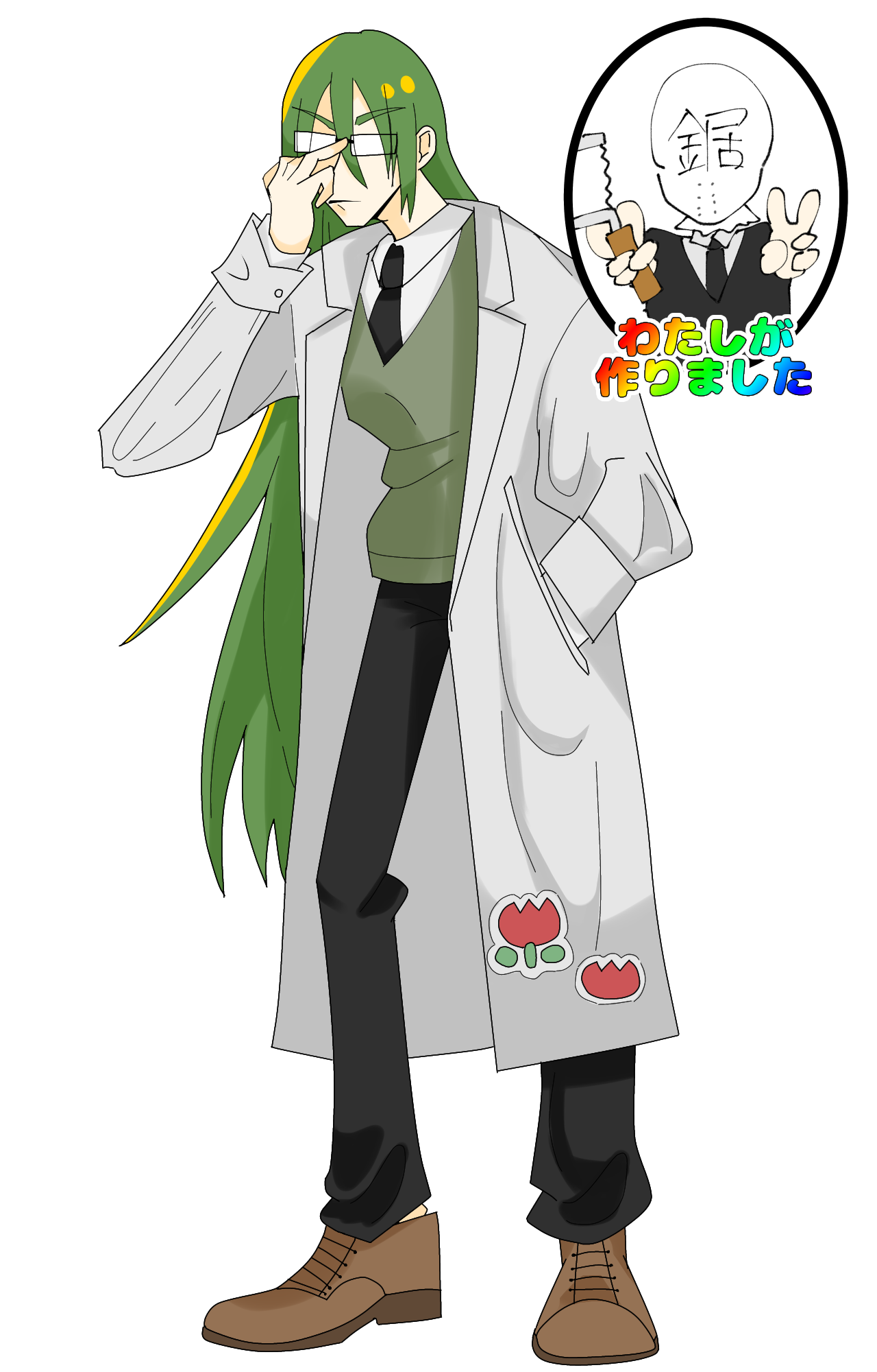 そうですね~。ここは安直にド好みの長髪クソガリ高身長白衣眼鏡男ですかね~。高身長と言うのは180cm越えが良いんですが、好みで言うと2m。癖で言うと3mだけど猫背の男が良いですね~。眼鏡は反射して目が見えないタイプが好みです。乾貞治みたいな。白衣には色々くっついてるものが好みですが、最近のトレンドはアップリケ(チューリップの赤)かなって思います。これだけで子供にはそれなりに優しそうに見えるのが癖ですね~。髪色は緑か黒かな~。赤青も捨てがたいな~。日替わりかな!体重は10kgぐらいで良い。持ち運びたいので。