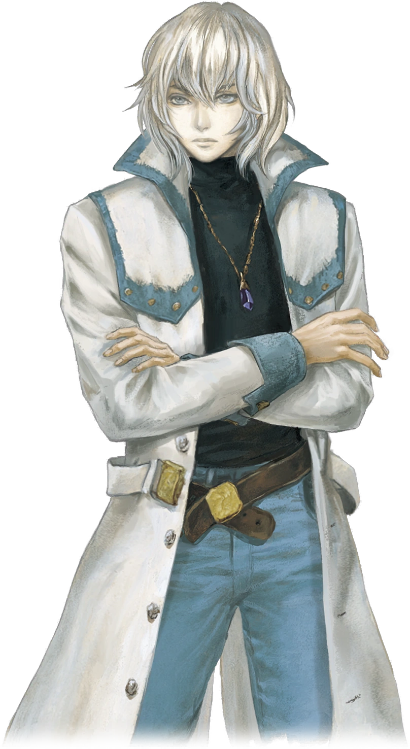 中性的に整った顔立ちに白髪のセミショート