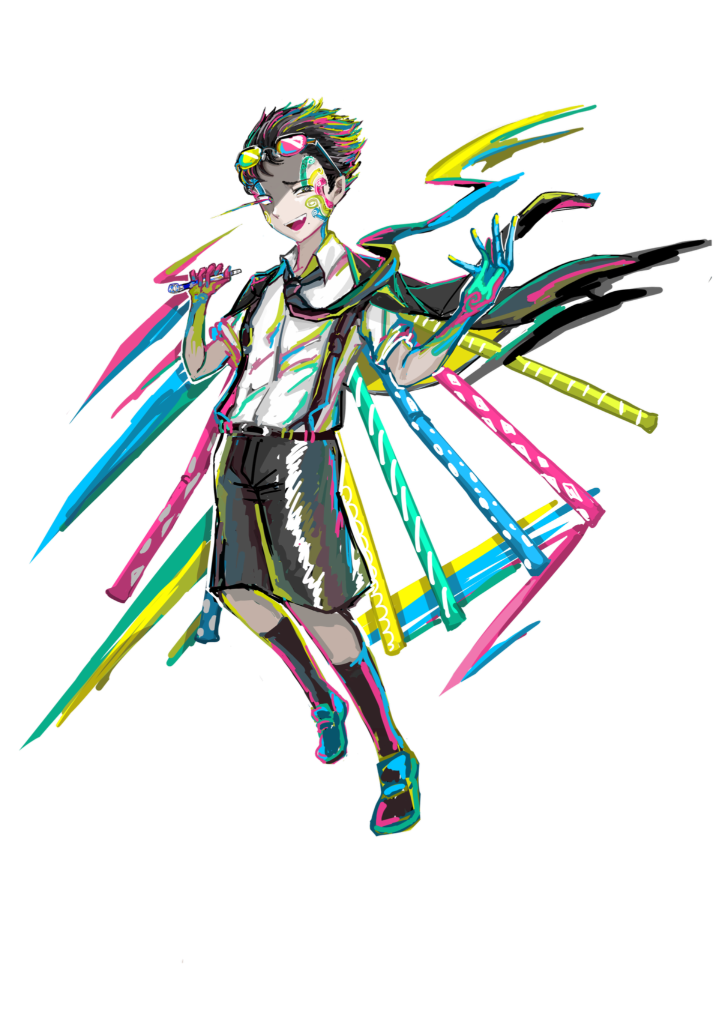 吹き戻しをこよなく愛するお調子ものの小学6年生。レネゲイドに感染した特別な吹き戻し「マガツピロピロ」を吹く他にも独創的な吹き戻しを多数制作し、それをぴろぴろする肺活量を兼ね備えている。